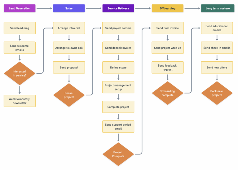 Once you understand what the workflow are, you can map yours out and find ways to automate them. This cuts your admin time, freeing you up to do more client work and bill more!